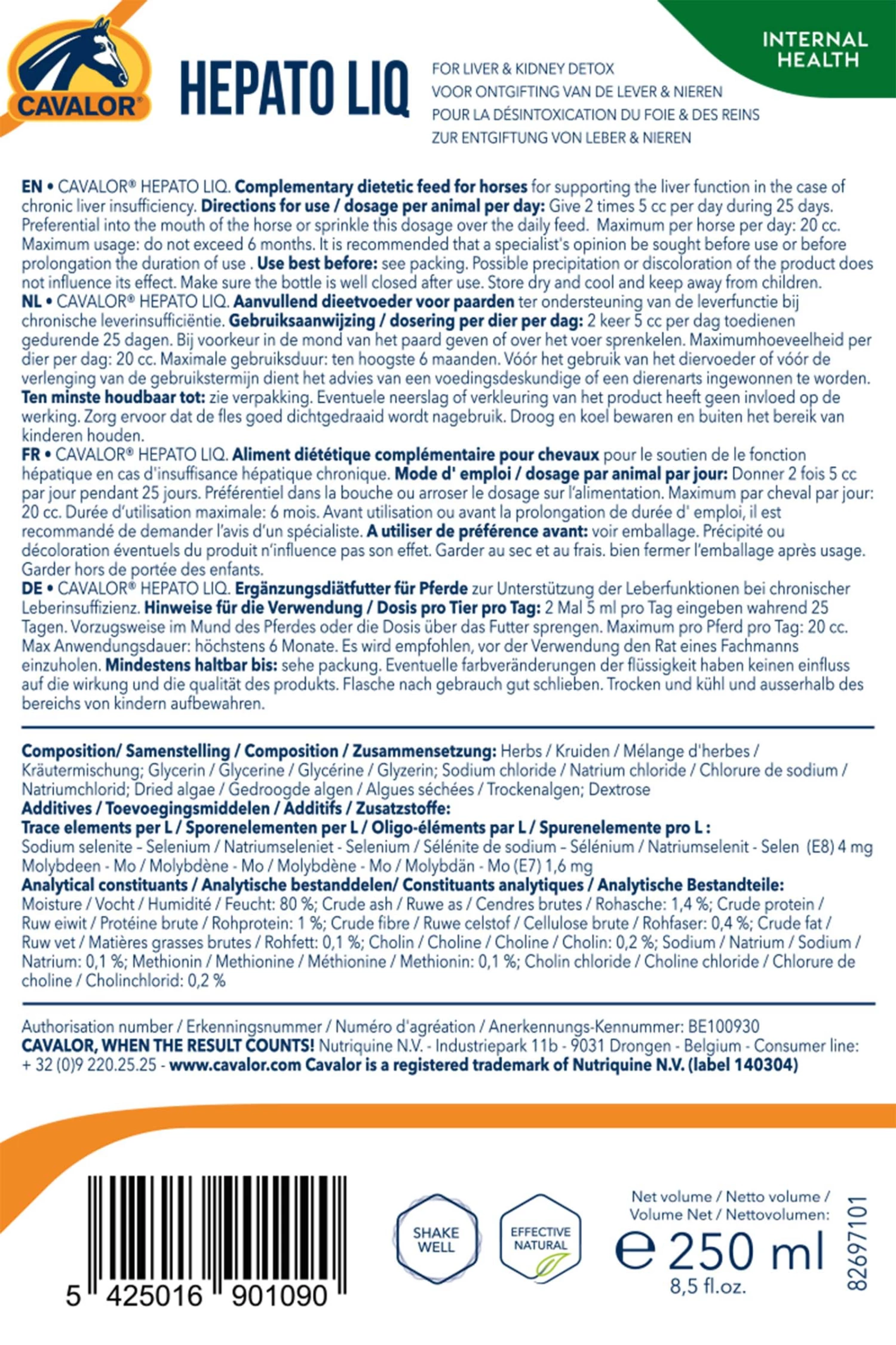Cavalor Hepato Liq ist reich an Kräuterextrakten mit positiver Wirkung auf die Leber und die Nieren. Die Kräuter sorgen dafür, dass bestimmte Giftstoffe die Leberzellmembranen nicht durchdringen oder beschädigen können.