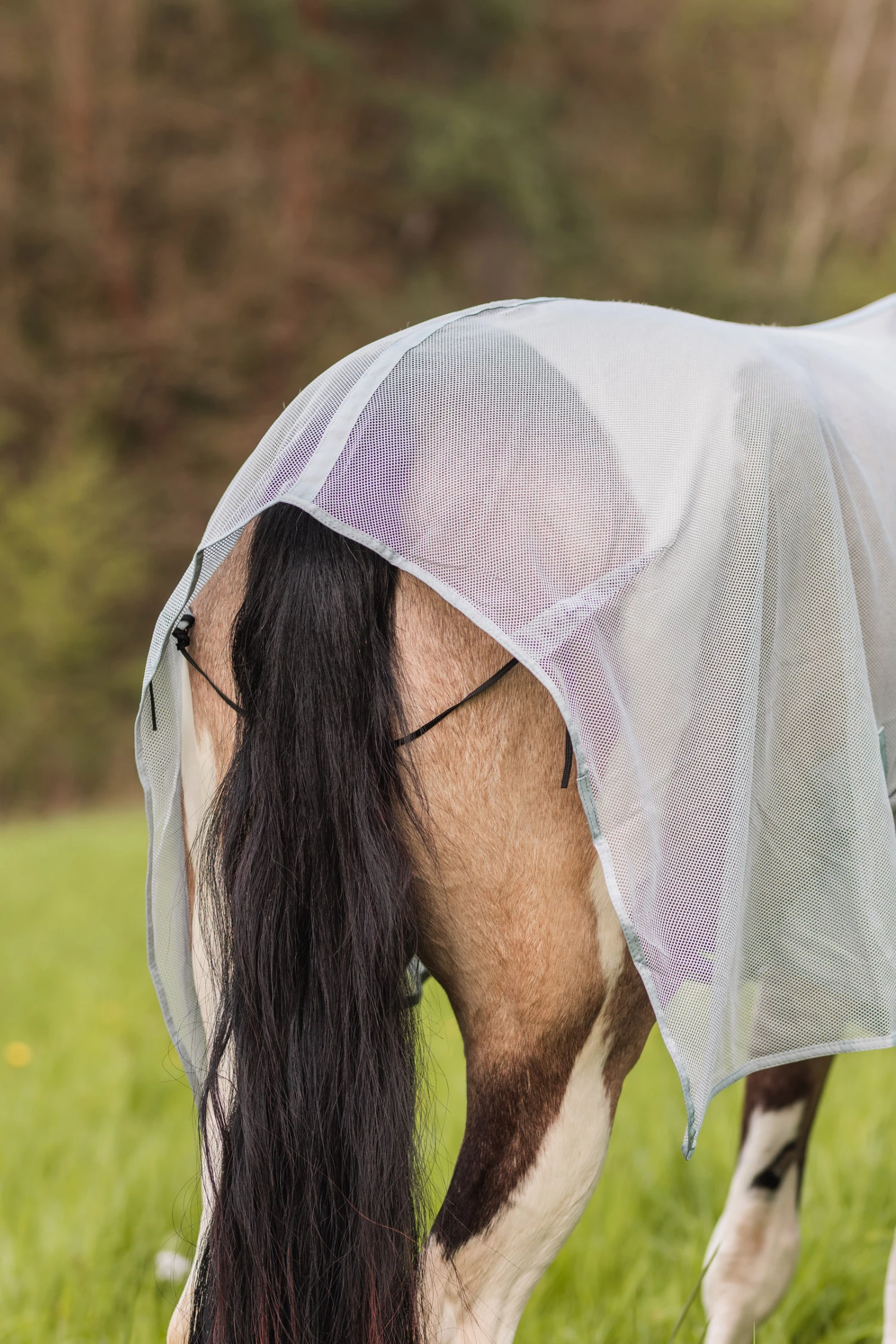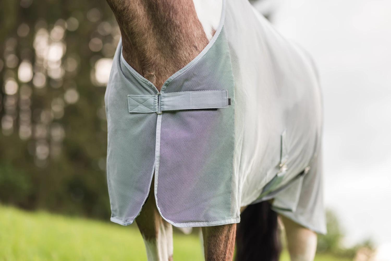 Perfekt für den Transport oder für den Einsatz im Stall. Diese leichte Mesh-Decke kann mit dem einfachen Front-Klettverschluss leicht angebracht und entfernt werden. Eine großartige Wahl als Fliegenschutz im Stall oder Transporter.