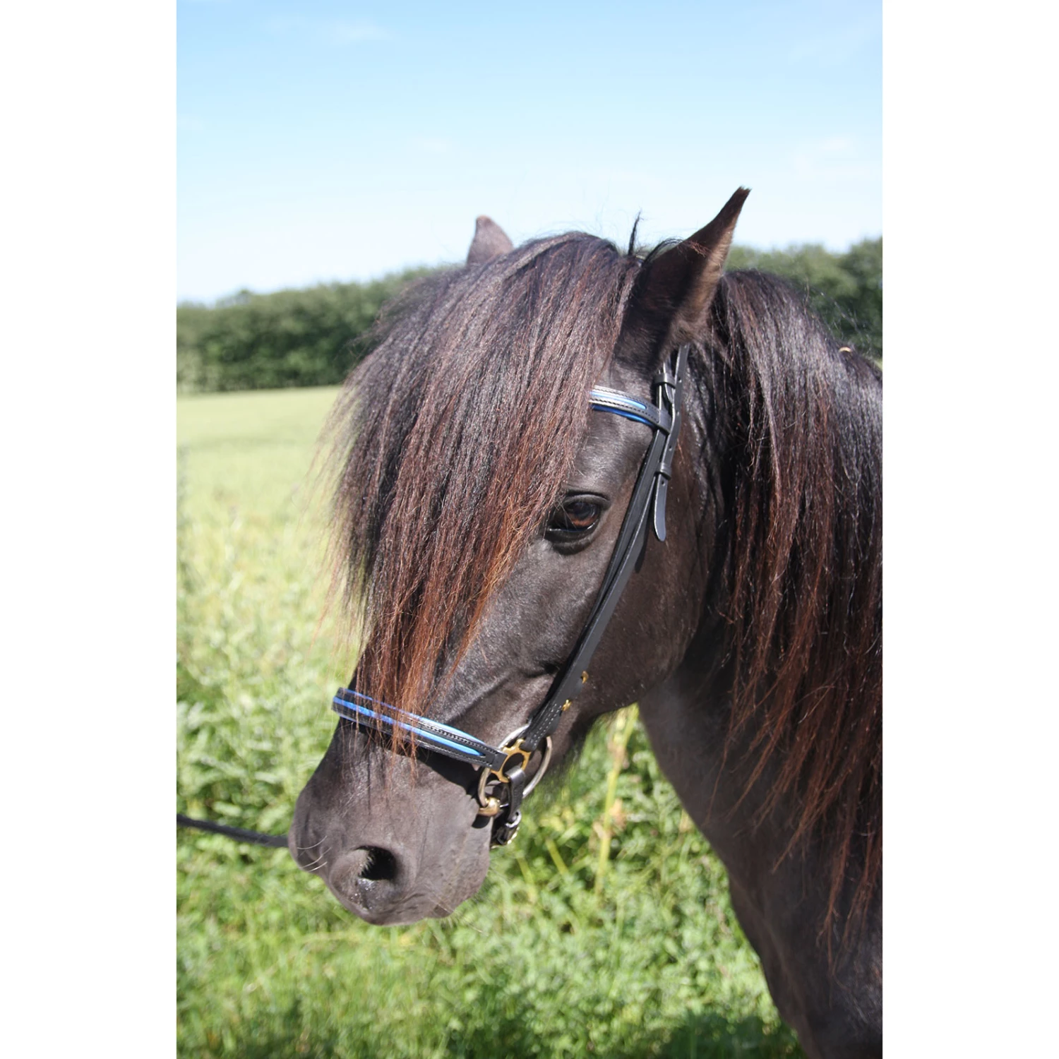 Das New Style Reithalfter ist Teil einer Farbkollektion in weicher Qualität mit Messingbeschlägen.