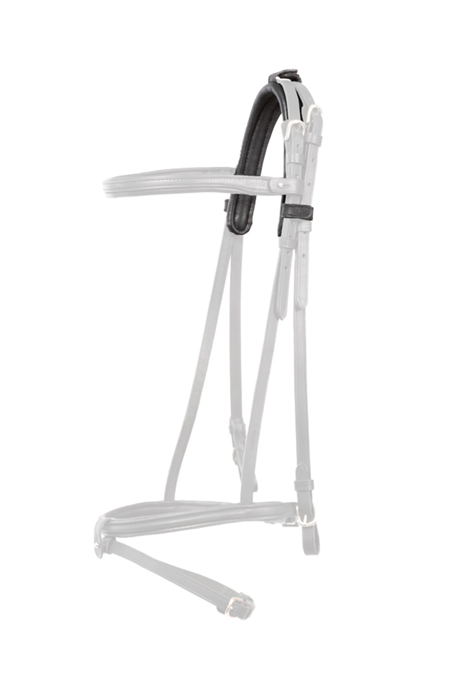 Das Kopfpolster kann mittels Klettverschlüssen befestigt werden und ist gerade für sensible Pferde im Ohrenbereich sehr gut geeignet.