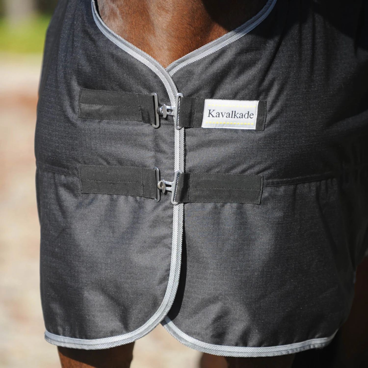 Diese neue Outdoordecke bietet dem Pferd viel Bewegungsfreiheit und Komfort in der Übergangszeit und im Winter. Sie ist aus einem atmungsaktivem, wasserdichtem (3000 mm Wassersäule) und reißfestem (600 D Ripstop) Material gefertigt. Ohne Rückennaht. Doppelter Drehhakenbrustverschluss mit Klett, elastische Einsätze bei der Kreuzbegurtung, tiefer Schweifriemen und Schweiflatz. 50g Füllung.