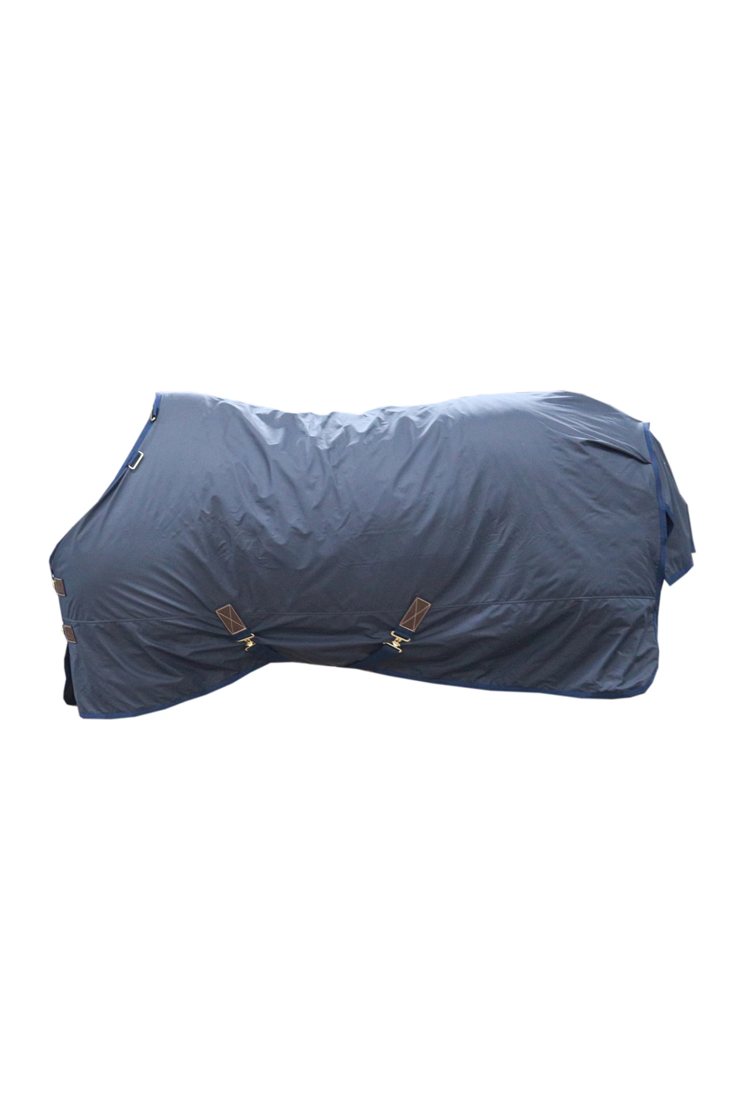 Für 100% Wind- und Wasserdichte verwenden wir das gleiche Material wie für den Regenmantel für Pferde, eine PU-Beschichtung. Diese Beschichtung ist die gleiche, die auch für die typischen gelben Fischerjacken verwendet wird. Sie wird auf der Außenseite der Decke aufgebracht und ist daher auf dem Markt für Decken einmalig. Dank des künstlichen Kaninchenfells auf der Innenseite ist die Decke sehr weich für die Haut und scheuert nicht. Das Futter sorgt auch für glänzendes Fell beim Pferd und verhindert das Gefühl von Feuchte unter der Decke. Das künstliche Kaninchenfell bildet eine isolierende Schicht, die die Körperwärme des Pferdes einfängt und speichert. Die Hurricane-Decke hat vorne zwei klassische Edelstahlverschlüsse in Messingoptik, zwei Kreuzgurte und eine abnehmbare Schweifkordel mit Kunststoffüberzug. Die klassischen Kunstlederpatches und die goldenen Details lassen dein Pferd auch an Regentagen elegant aussehen.