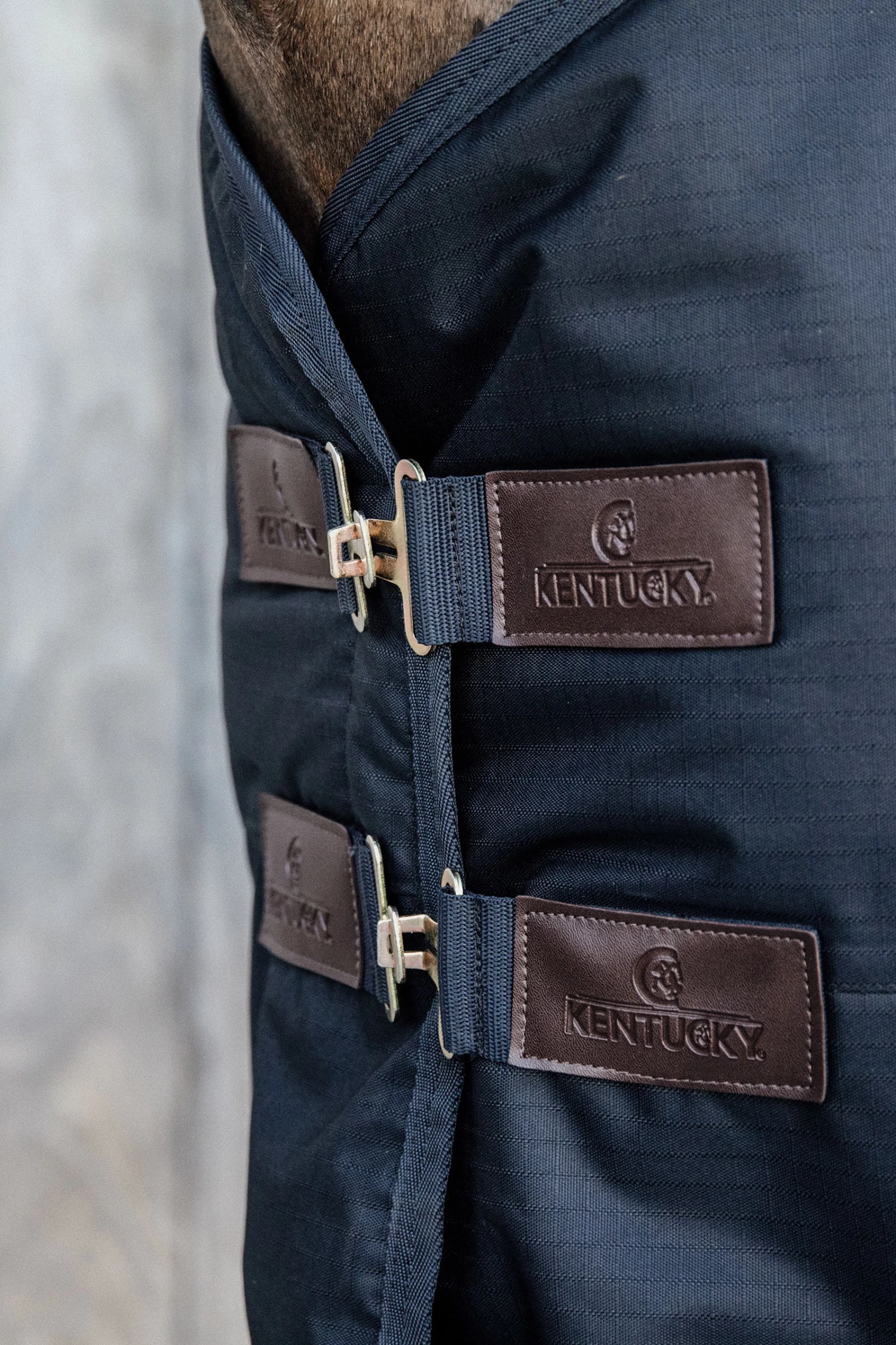 Kentuckys wasserdichter Klassiker hat keine Naht auf dem Rücken der Decke, wodurch das Risiko von Undichte verhindert wird. Für mehr Wärme kannst du die Weidedecke mit einer Unterdecke wie der Unterdecke Classic benutzen. Falls dein Pferd noch mehr Schutz braucht, kannst du separat ein abnehmbares Halsteil kaufen. Die Decke ist im typischen Kentucky-Stil gehalten: Sie hat 2 Messingverschlüsse vorne aus Edelstahl vorne, kombiniert mit einem starken Klettverschluss, zwei Kreuzgurten und einer abnehmbaren Schweifkordel.